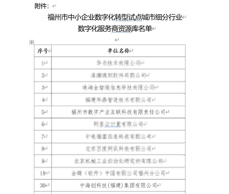 中海创和旗下子公司双双入选《福州市中小企业数字化转型试点城市细分行业数字化服务商资源库名单》